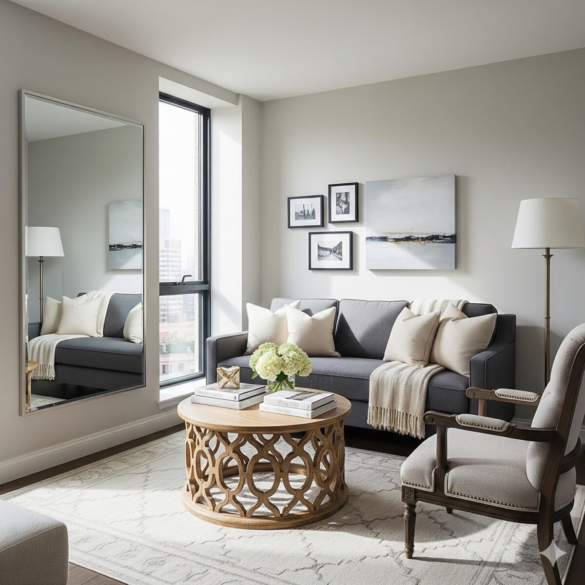 Mirrors reflect light and visually expand tight rooms—perfect for compact flats in areas like Dum Dum or Baranagar. Use large wall mirrors near windows or entryways.